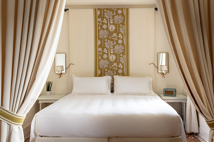 Fenêtre avec vue sur la mer, située dans l`ancienne tour du XVIe siècle, avec fenêtre donnant soit sur la mer, soit sur la baie de San Montano. Un lit double. Chaque chambre, très romantique, est aménagée avec des meubles et des couleurs toutes coordonnées avec un goût exquis et dispose d`une armoire intégrée, d`une table, d`une télévision par satellite, d`un minibar, de 2 téléphones (un dans la salle de bain), d`une salle de bains avec lavabo en marbre, baignoire ou douche, bidet, sèche-cheveux et miroir de maquillage. Air conditionné. Coffre-fort dans la chambre.