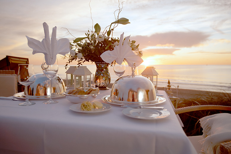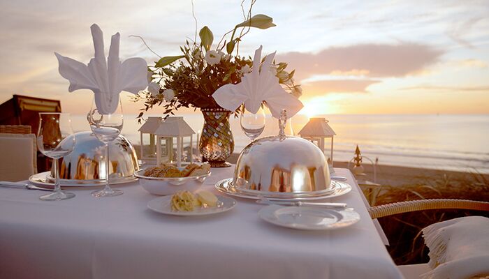 L`hôtel de luxe 5 étoiles Westerland Sylt Hotel Miramar vous attend: dînez à la fenêtre de notre restaurant pendant que vous regardez confortablement, comment le vent souffle sur les vagues à l`extérieur et souffle le sable de la plage tandis que le soleil se couche à l`horizon.