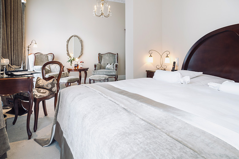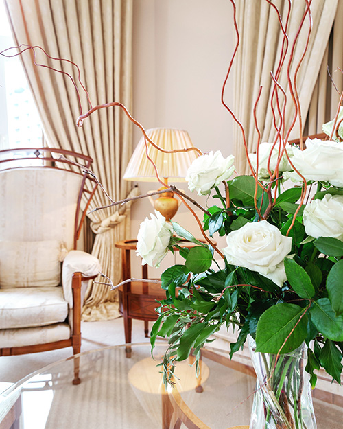 Profitez de votre temps dans ces chambres élégantes dotées d`un mobilier italien. Les chambres sont spacieuses et meublées avec des lits king-size ou lits jumeaux. Nos suites disposent toutes d`un espace chambre et salon séparés.