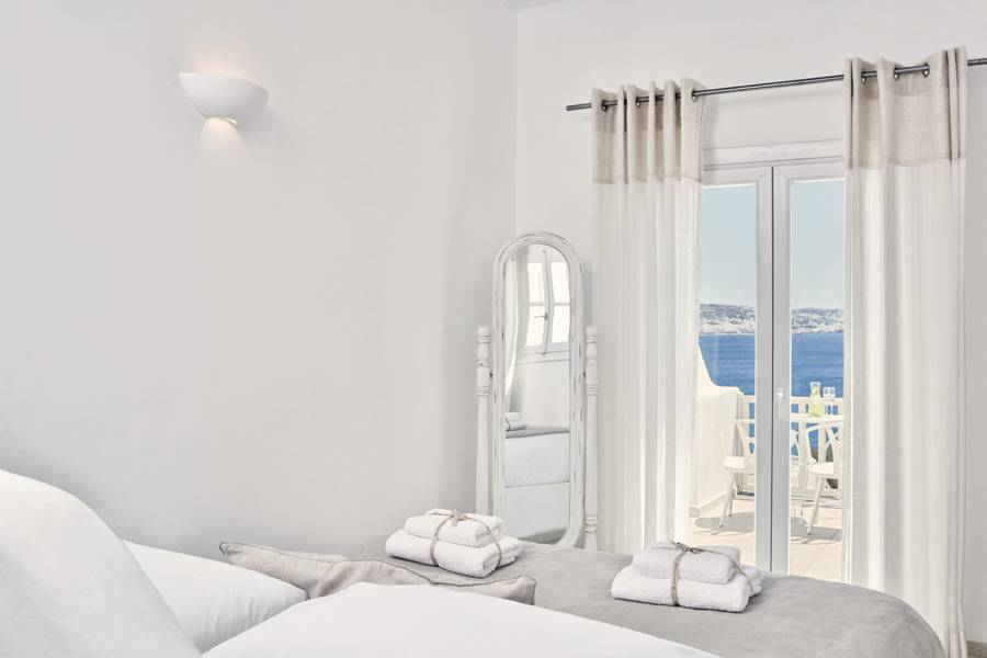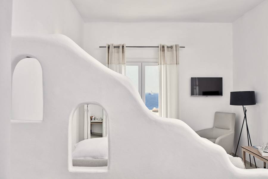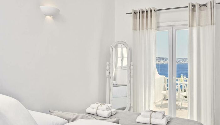 Il propose neuf catégories de chambres, selon vos souhaits et votre budget. Les chambres et les suites sont inspirées par l’architecture des Cyclades et sont idéales pour des moments de détente et de calme accompagnés d’une vue imprenable sur la mer. Chaque chambre est conçue pour être un chez-soi, décoré dans une simplicité luxueuse. Attendez-vous à de grands lits confortables, à des tissus blancs immaculés et à un mobilier ultra-moderne.