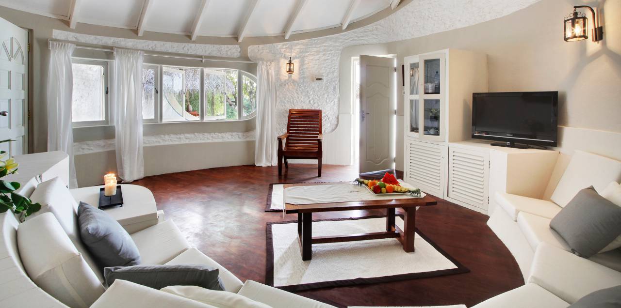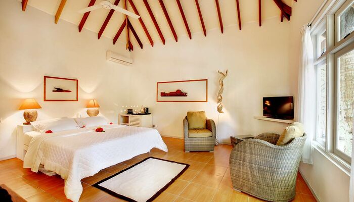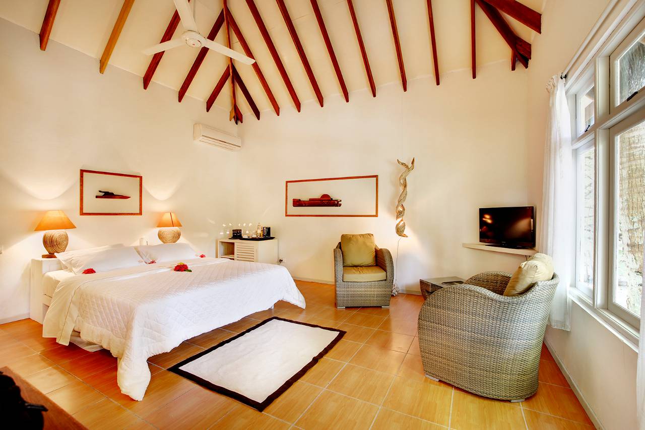 Les Beach Villas (75 m²) sont situées au nord de l'île et les Deluxe Beach Villas au sud. les deux ont un accès facile au magnifique récif de la maison. Les villas ont les mêmes caractéristiques. Pour les familles, nous avons 3 villas familiales Deluxe Beach et 3 villas familiales Beach (100mq) avec 2 chambres à coucher, 2 salles de bain (1 douche extérieure), grand salon et plage privée avec cottage Jacuzzi.