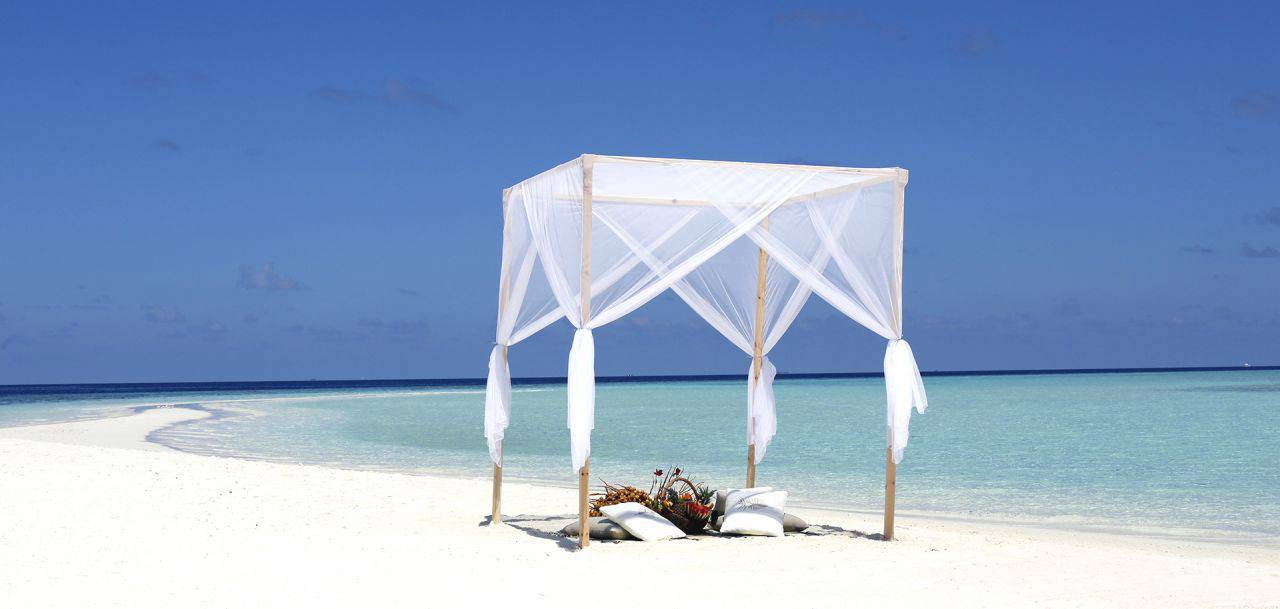 La cérémonie, présidée par le plus haut représentant de l'île, se termine par un toast au champagne et le découpage traditionnel du gâteau. Elle est suivie d'un dîner au barbecue aux chandelles sur la plage privée.