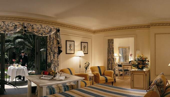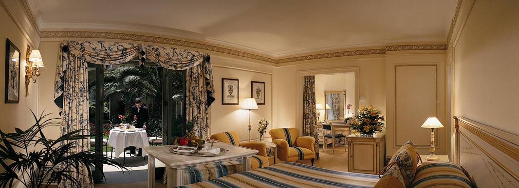 Situé dans l‘aile jardin et le palais au 1er, et 02e étages 03e, toutes avec balcon donnant sur le jardin et / ou à la piscine. Chambres King, Queen ou Twin disponibles sur demande. Chambres communicantes disponibles et reliées à Garden Suite. Grandes salles de bains en marbre avec double lavabo et douche séparée sur demande. Environ 40 m² / 430 m².