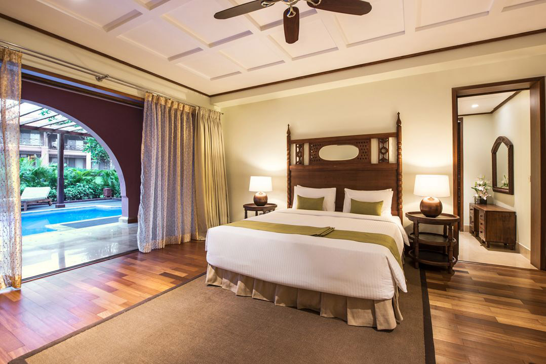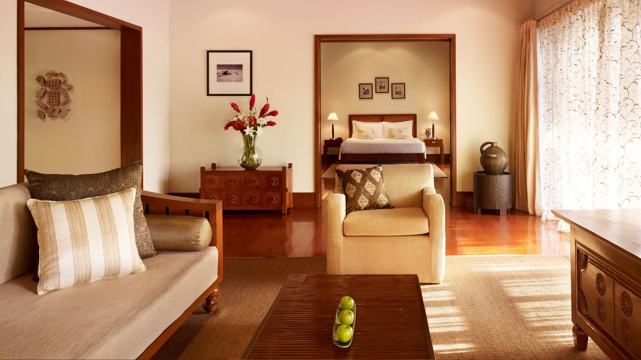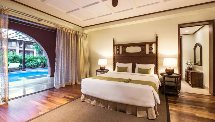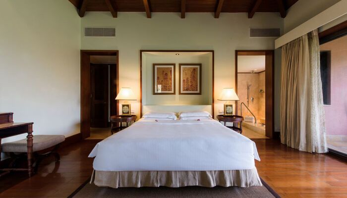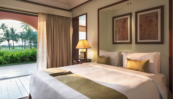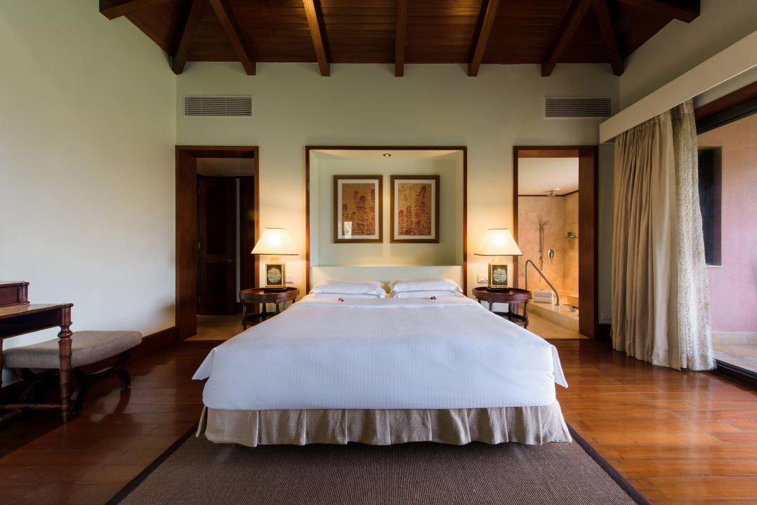 Une vue époustouflante sur une lagune scintillante et des pelouses superbement entretenues vous accueille dans une chambre de 41 mètres carrés à l‘image du patrimoine culturel très riche de Goa comprenant des œuvres d‘art contemporaines, un lit King et une salle de bains ouverte en marbre offrant une baignoire encastrée et une douche à jets de relaxation. Un balcon, un jardin intime et une grande véranda sont disponibles.