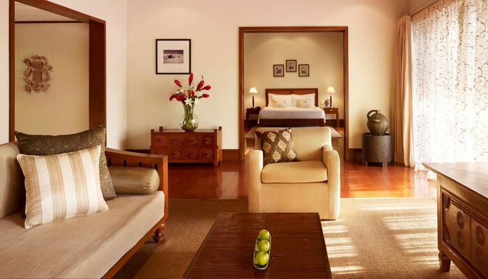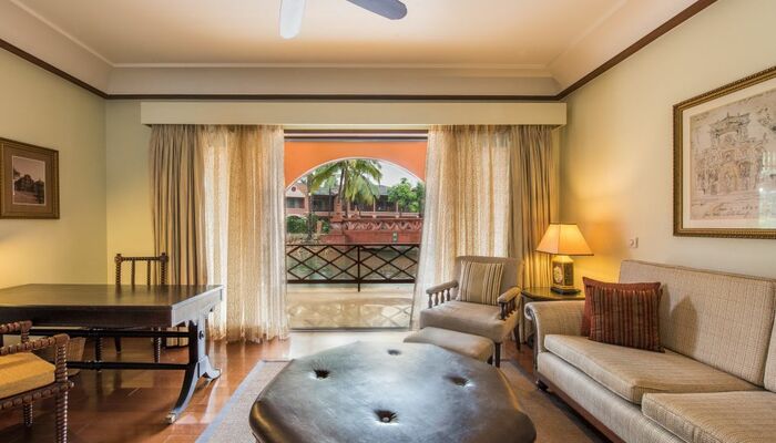 Une vue époustouflante sur une lagune scintillante et des pelouses superbement entretenues vous accueille dans une chambre de 41 mètres carrés à l‘image du patrimoine culturel très riche de Goa comprenant des œuvres d‘art contemporaines, un lit King et une salle de bains ouverte en marbre offrant une baignoire encastrée et une douche extérieure à jets de relaxation. Comprend une terrasse et un grand espace de travail avec accès Internet haut débit. Un jardin secret et une grande véranda sont disponibles.