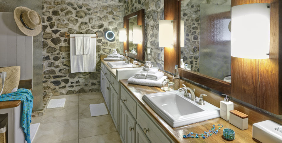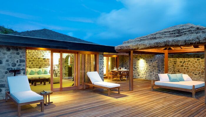 Les seize maisons luxe de notre complexe, situées sur une île, sont situées discrètement dans une variété d‘endroits, dans les collines des falaises océaniques et certaines sur la plage. Chaque chalet a ses propres avantages particuliers, qu‘il s‘agisse d‘un coucher de soleil ou d‘une vue sur la plage, ou d‘une vue panoramique sur l‘île et la mer entière, ce qui invite les invités à découvrir. Assemblé à partir de pierre bleue à la main, chaque chalet d‘une chambre est une structure autonome avec des plafonds en bois dur voûtés, violet et un plan d‘étage ouvert. À partir de la minute où vous vous installez, vous vous sentirez comme si vous étiez dans l‘intimité de votre propre maison. Des portes coulissantes au sol au plafond peuvent être ouvertes pour admirer la brise de mer fraîche, ou si elles sont préférées, il y a de la climatisation. Conçu avec un maximum de confort, chaque chalet luxe en suite est équipé de lits king-size, d‘un salon spacieux et de salle à manger intérieure et extérieure si vous désirez que vos repas vous soient livrés. L‘ameublement est moderne et contemporain, fabriqué en teck, en matériaux naturels et en tissus aux teintes douces et pastel. Les équipements de la chambre incluent une station d‘accueil iPod Bose, une machine à café Nespresso, des draps italiens, des serviettes souples Mascioni, des articles de toilette luxueux et la climatisation. Après une baignade ou une promenade, vous pourrez vous détendre sur vos chaises longues en teck sur votre grande terrasse en bois ou dans un hamac pour cette sieste parfaite.