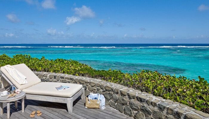 Des vues imprenables sur l‘océan de l‘Atlantique et les îles Grenadine environnantes peuvent être vues de toutes nos villas isolées de la plage et des chalets invités.