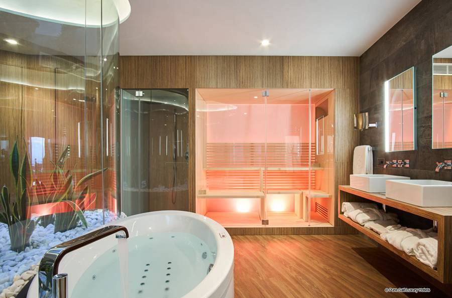Hôtel 5 étoiles de luxe Mallorca Pure Salt Port Adriano Spa & Bien-êrtre, à Majorque, a été spécialement conçu pour accueillir un centre de spa et de bien-être de luxe exclusivement conçu avec les installations les plus modernes pour le bien-être de nos clients. La relaxation totale est importante pour développer une interaction harmonieuse entre l'esprit, le corps et l'esprit et dans cet hôtel, vous n'aurez aucune excuse ... Cet hôtel 5 étoiles avec vue sur la mer à Port Adriano, à Calvia, possède un merveilleux spa avec un décor magnifique et installations modernes: sauna, bain turc, douche Sensations, salle de remise en forme, bain d'eau froide, piscine intérieure avec accès extérieur direct à la spectaculaire piscine extérieure - chauffée toute l'année à 24 ° et offrant une vue splendide depuis les falaises. Détendez votre corps, votre esprit et votre âme dans l'espace bien-être, où vous trouverez nos meilleurs professionnels prêts à répondre à vos besoins avec les derniers soins exotiques et produits de beauté spécialement sélectionnés pour offrir une magnifique combinaison de détente et de santé et soins du corps.