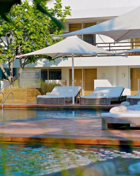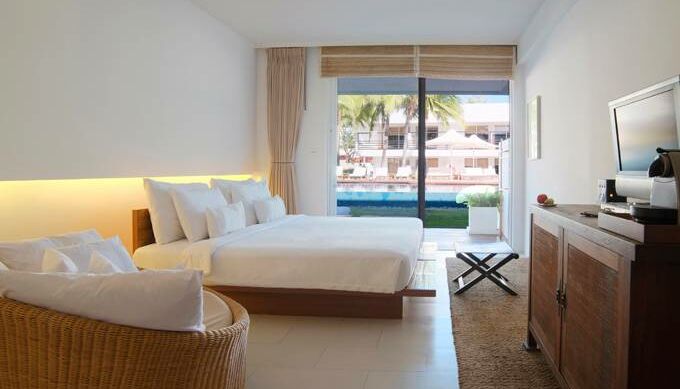 Toutes les chambres présentent des tons naturels et un design lumineux et aéré. Elles sont équipées d'une machine à café Nespresso et du film Chanel proposant un choix de 350 titres. Les chambres entourent la piscine et sont situées à 100 mètres de la plage.