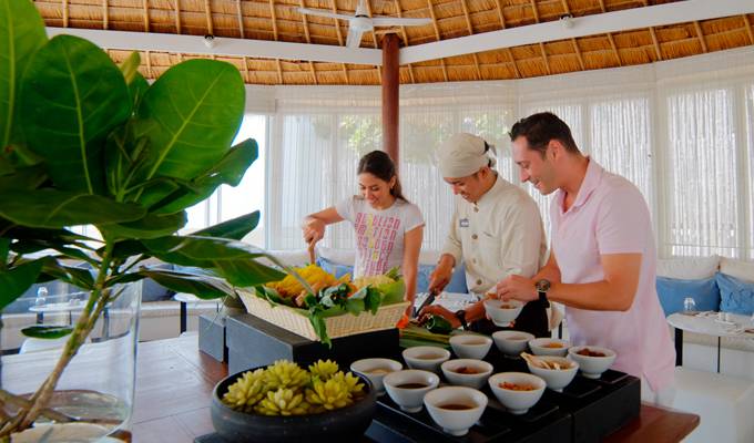 Un restaurant en plein air, offrant une vue imprenable sur la mer et le son des vagues se brisant juste au pied du restaurant, fournissant les ingrédients pour une expérience culinaire idéale. Au restaurant, vous avez le choix entre des tables en bois sombre ou des fauteuils éclairés blancs de style lounge, où vous pourrez déguster des plats inspirés de la Thaïlande et du Pacifique ainsi que des barbecues authentiques.
