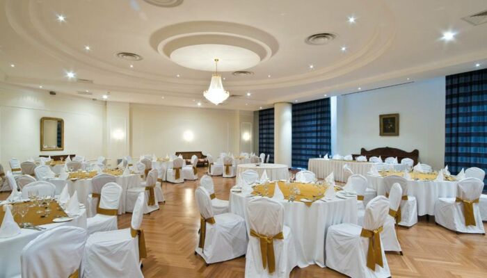Services proposés: Cinq salles de réunions sur plus de 1 260 m², L`impressionnante Grande Salle de Bal peut accueillir jusqu`à 700 invités pour les évènements de type conference,