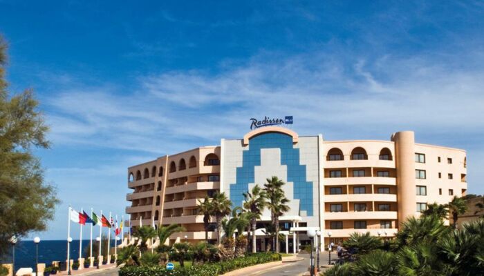 Doté d`un emplacement idéal dans la Baie de St George, le Radisson Blu Resort, St. Julian`s surplombe la Mer Méditerranée et bénéficie d`une vue imprenable qui s`étend de la côte nord de Malte jusqu`à l`île voisine de Gozo. Situé dans un endroit tranquille et paisible, le resort n`est qu`à un kilomètre de la vie nocturne animée de St. Julian`s, de son casino, de ses restaurants et de ses bars branchés. Valletta, la capitale historique de l`île est à 20 minutes de route de l`hôtel. L`hôtel met un grand parking à la disposition de ses clients.