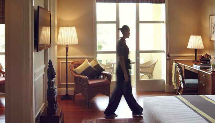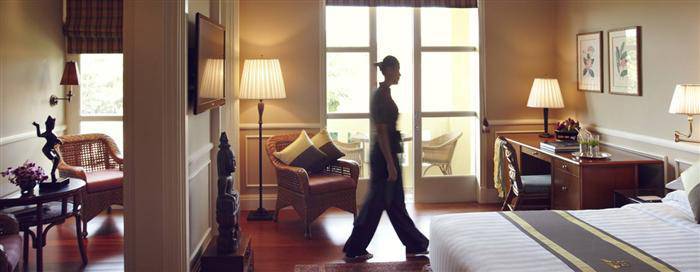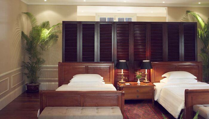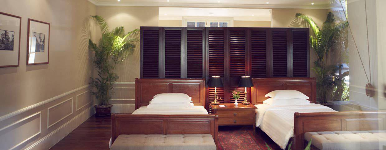 Le Raffles Grand Hotel d‘Angkor incarne le charme et l‘élégance du Cambodge. Chacune des 119 spacieuses chambres, suites et villas est élégamment aménagée avec un mobilier cambodgien de style objet d’art, dont certaines pièces sont conservées au sein de l’hôtel depuis son ouverture en 1932. Chaque chambre dispose d’une vue spectaculaire sur la magnifique piscine ou sur les grands jardins et la plupart sont dotées d’un balcon permettant de l’admirer ou de prendre l’air.
