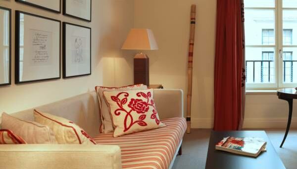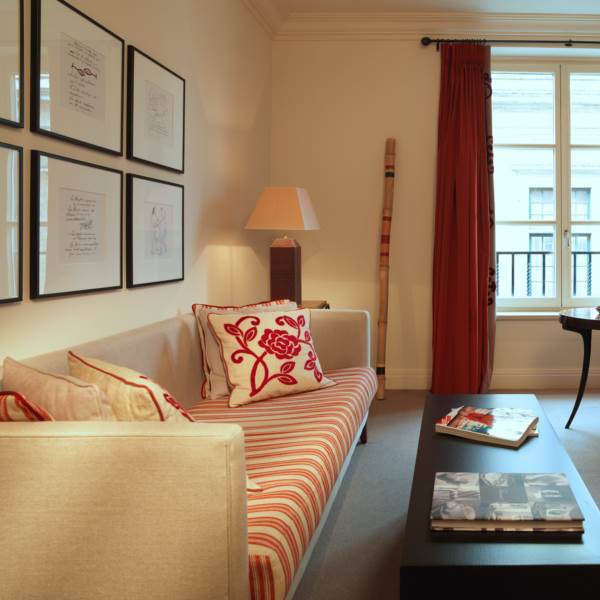 Nommée en l`honneur de l`un des artistes les plus célèbres de Belgique, notre Suite René Magritte est vibrante et luxueuse, avec juste un soupçon d`esprit. Dans une pointe du chapeau melon, la suite est décorée avec des lithographies originales de Magritte, ainsi que des tasses à expresso à thème trouvées sur le bar dans le hall d`entrée de couleur terre cuite. La couleur est somptueusement utilisée dans toute la suite, de la collection organisée de tissus d`ameublement à la salle de bains en marbre ornée de mosaïques, tandis que des objets d`art et des tomes classiques tapissent les étagères, et de grandes fenêtres inondent de lumière le spacieux coin salon et le dressing chic.