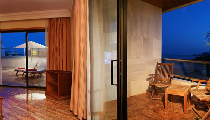 Les Junior Suites de 72 m² face à la mer disposent de la climatisation complète, de la télévision numérique, du Wi-Fi gratuit, d`un coffre-fort, d`une salle de bains en marbre, de peignoirs, d`un sèche-cheveux, d`un choix d`oreillers et d`un balcon avec table et chaises longues.