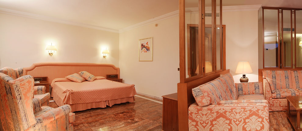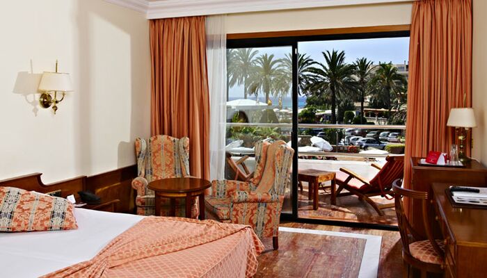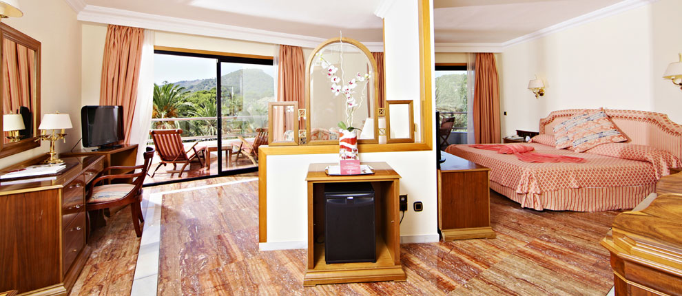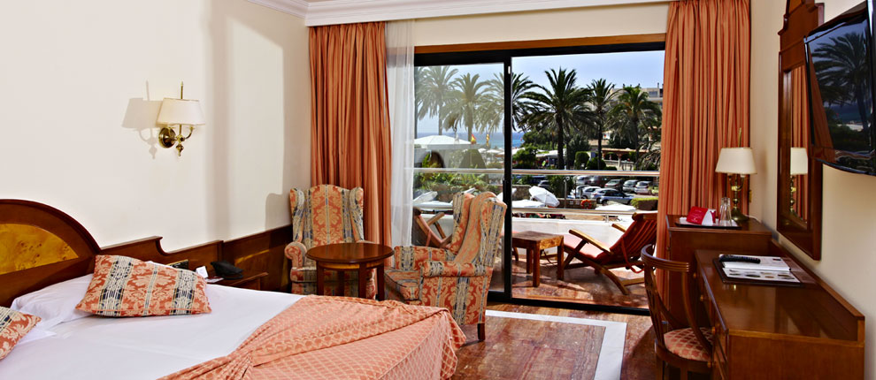 Toutes les chambres et les suites sont entièrement équipées de climatisation individuelle, télévision par satellite avec chaînes de radio, connexion internet (câble et wi-fi avec supplément), téléphone direct, coffre-fort, minibar (extra), salle de bain en marbre avec peignoir et un sèche-cheveux, ainsi qu‘un balcon avec chaises longues. Pour les occasions spéciales, la Suite Impériale avec env. 110 m2 et l‘immense terrasse avec jacuzzi privé, est le décor parfait.