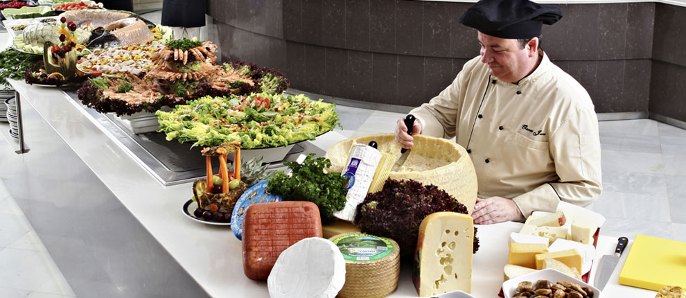 Pour votre bonheur, vous trouverez un grand assortiment culinaire, allant du déjeuner à la carte au snack-bar au bord de la piscine jusqu‘à un petit-déjeuner complet et un diner buffet avec spectacle au restaurant. Le petit-déjeuner buffet comprend un coin repas et un buffet majorquinois. Au dîner, il existe divers plats végétariens et tous les buffets à thème nocturne, ainsi qu‘un dîner de gala une fois par semaine, capable de satisfaire toutes les préférences.
