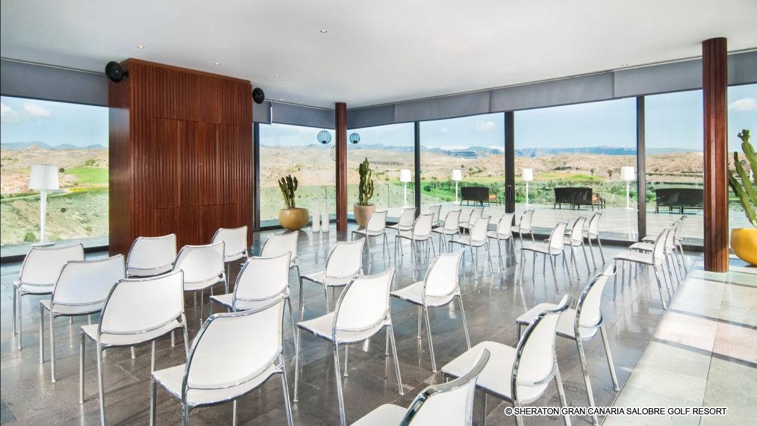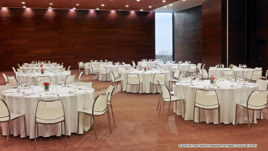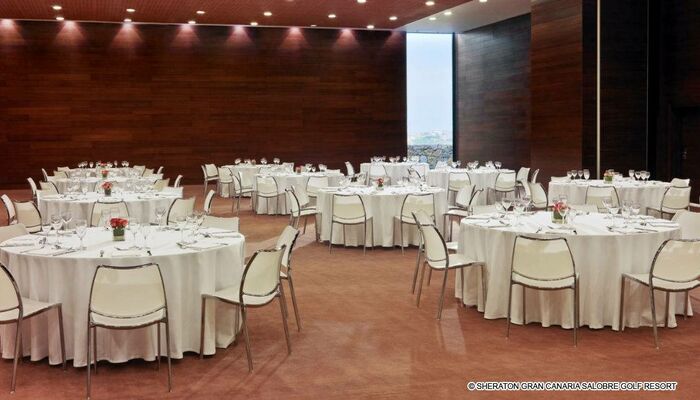 Le Sheraton Gran Canaria Salobre Golf Resort propose une vaste gamme d‘espaces élégamment aménagés pour les réunions et banquets, un centre d‘affaires complet, des espaces de réunion polyvalents, des salles de conseils et une connexion sans fil LAN. Des équipements audiovisuels et de télécommunication ultramodernes, des écrans plasma pour les diffusions audiovisuelles, des tableaux d‘affichage bien pensés, des tableaux de conférence électroniques, des ordinateurs portables, des téléphones mobiles et des fax sont disponibles sur demande. Notre équipe spécialisée est à votre entière disposition pour vous offrir un service d‘exception qui garantira la réussite de tout évènement.