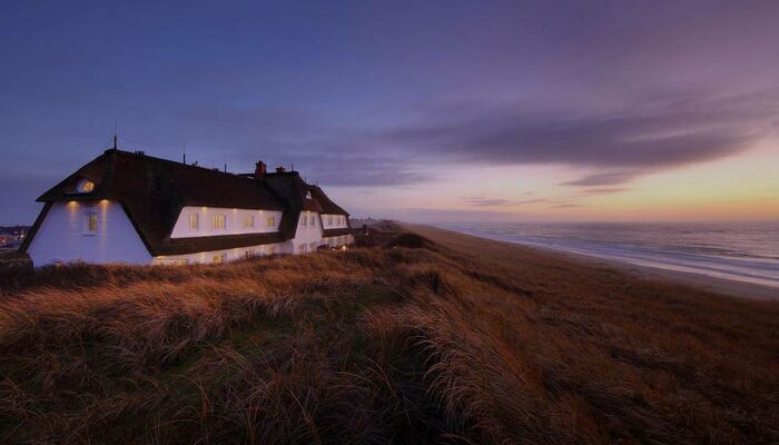 Dans la période de novembre à avril - lorsque les jours raccourcissent et que les nuits s‘allongent et qu‘il est si confortable - vous avez la possibilité de louer l‘ensemble du lieu et de profiter de Sylt exclusivement, seulement avec vos proches. Notre „Landhaus am Meer“ soit maison de Campagne à la mer dispose de 15 chambres et suites meublées de façon individuelle, d‘un restaurant gastronomique 2 étoiles, d‘un bar accueillant, d‘une salle du port, d‘une cave à vin bien garnie et d‘un espace bien-être et sport de qualité.