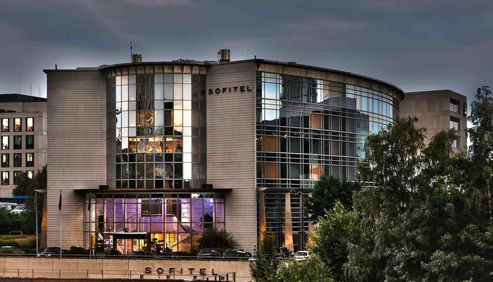 Le Sofitel Luxembourg Europe est l`unique hôtel 5 étoiles du plateau du Kirchberg. Situé en plein coeur du quartier des institutions européennes et à proximité du nouveau centre des expositions, c`est l`endroit idéal pour les clients en voyage d`affairesou d`agrément. Vous pourrez vous détendre dans l`un des sites culturels proches de l`hôtel ou réveillez vos papilles dans l`un de nos restaurants. L`hôtel n`est qu`à 7 km de l`aéroport Findel, 5 km de la gare ferroviaire centrale et 2 km du centre-ville.