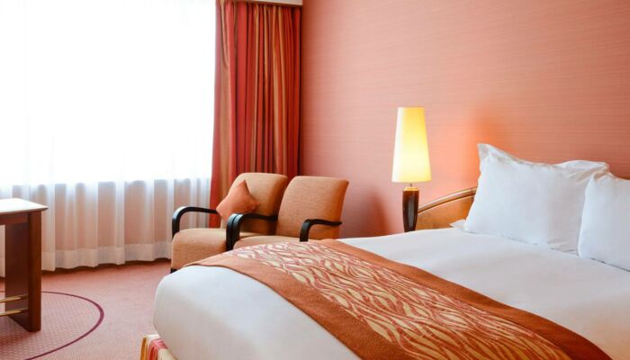 43 m², design moderne, lit King Size, douche à effet pluie et éclairage d`ambiance, MyBed by Sofitel, toilettes séparées, accessoires de luxe. WIFI et appels locaux gratuits, minibar approvisionné, départ tardif et arrivée anticipée selon disponibilité.Fermer
