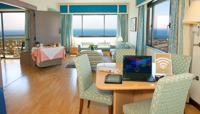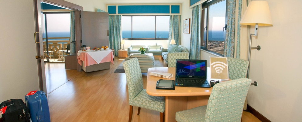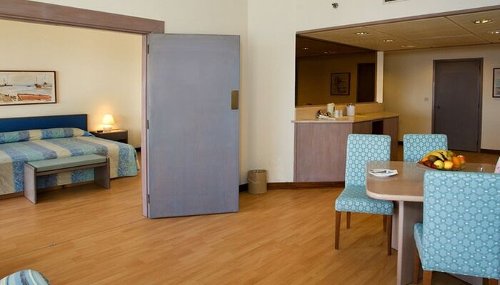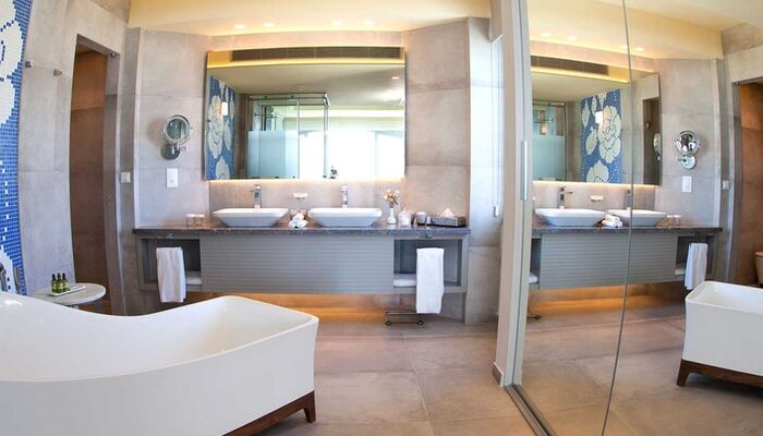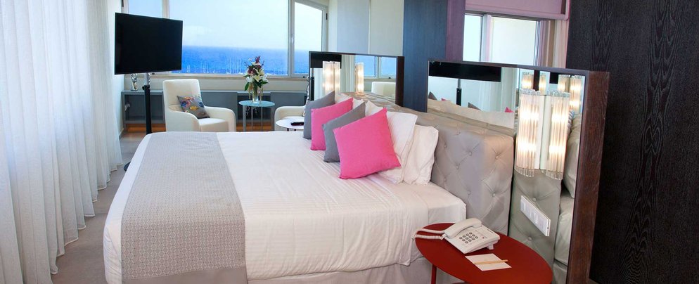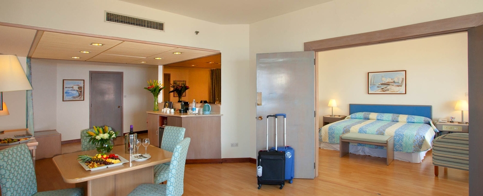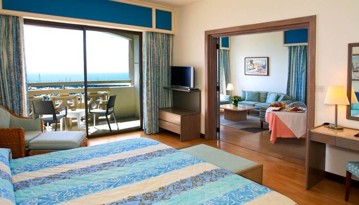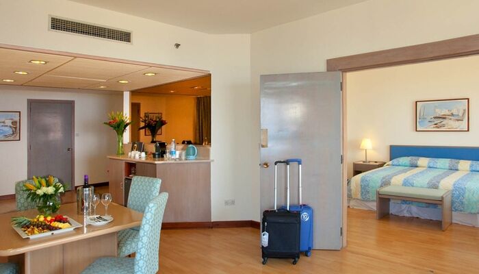 Complètement rénové en 2017 sans frais épargnés, ces suites modernes et spacieuses (deux seulement disponibles) offrent tout le confort moderne et le luxe. Un lit king size (180 cm x 200 cm) donne sur les vues glorieuses du côté de l‘hôtel qui intègre la toile de fond montagneuse contre la belle baie de Limassol. Une baignoire de luxe indépendante et indépendante est incorporée dans la chambre avec une grande cabine de douche à pluie, wc séparé, deux lavabos et des éléments d‘éclairage contemporains.