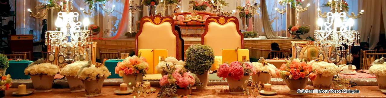 Notre large sélection de décor à thème offre le faste et le glamour d'une célébration de style Oscar ou d'options culturelles reflétant les mariages traditionnels de Sabah dans le style indien, malais ou chinois.