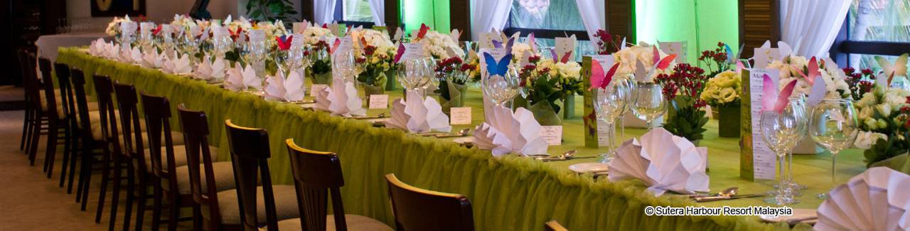 Faites cette promesse ou renouvelez votre engagement sur la plage d'un complexe hôtelier tropical ou d'une simple cérémonie dans un jardin et célébrez avec style vos familles et vos amis dans les grandes salles de bal ou les magnifiques jardins paysagers de l'hôtel Pacific Sutera ou du Magellan Sutera Resort.