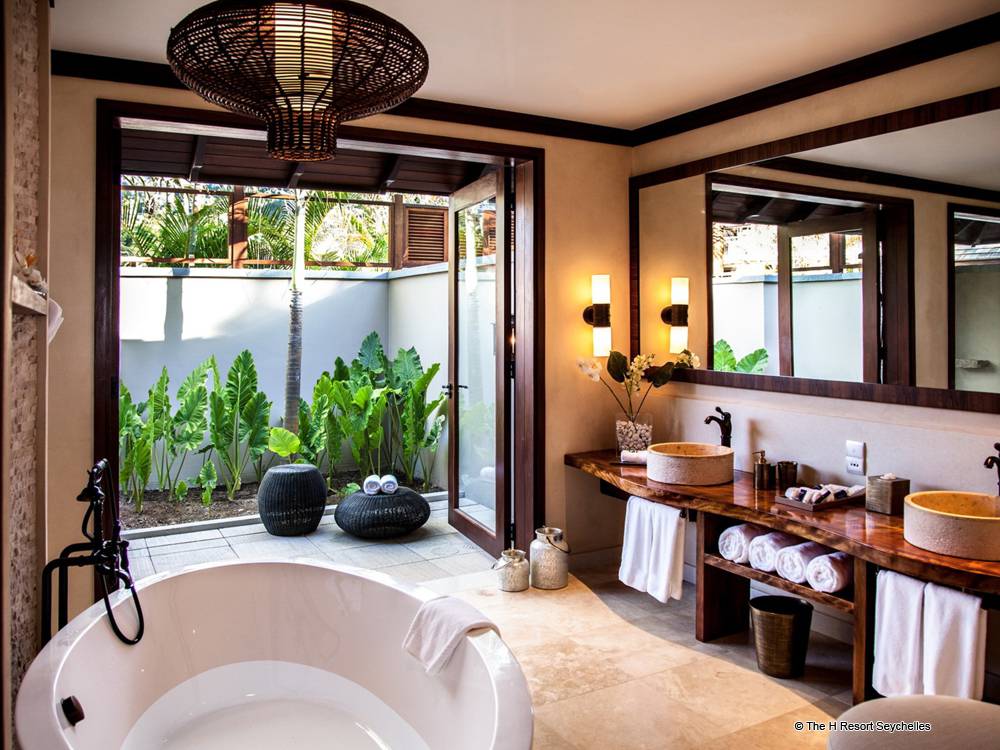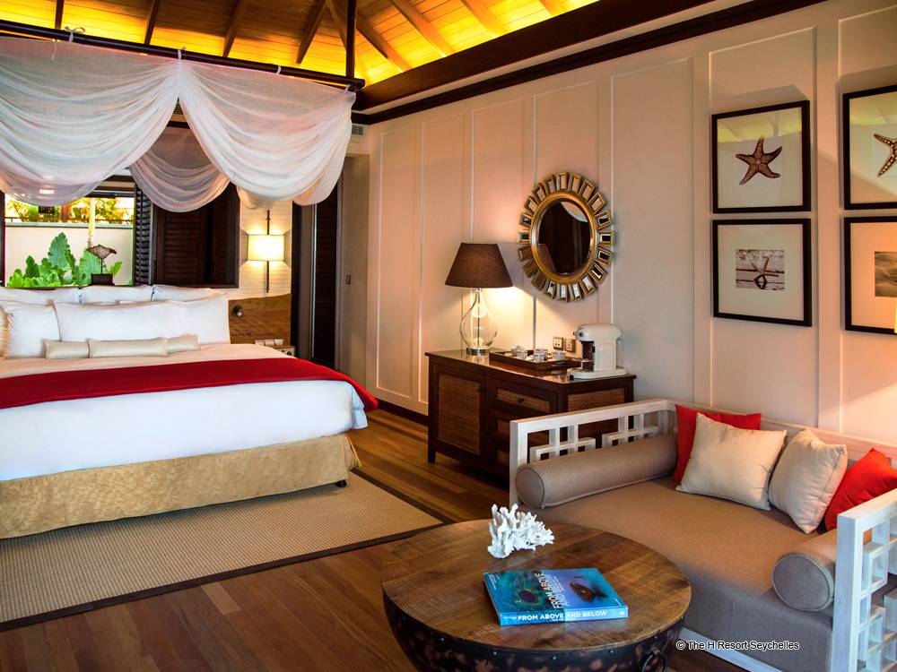 Le H Resort Beau Vallon Beach propose des logements de luxe élégamment conçus qui résument les expressions authentiques du patrimoine seychellois.