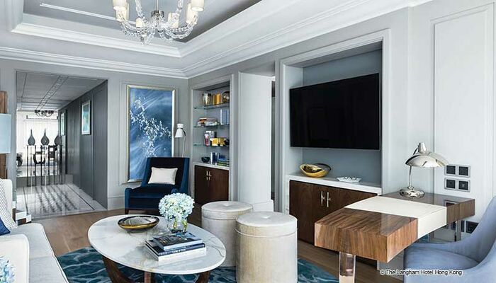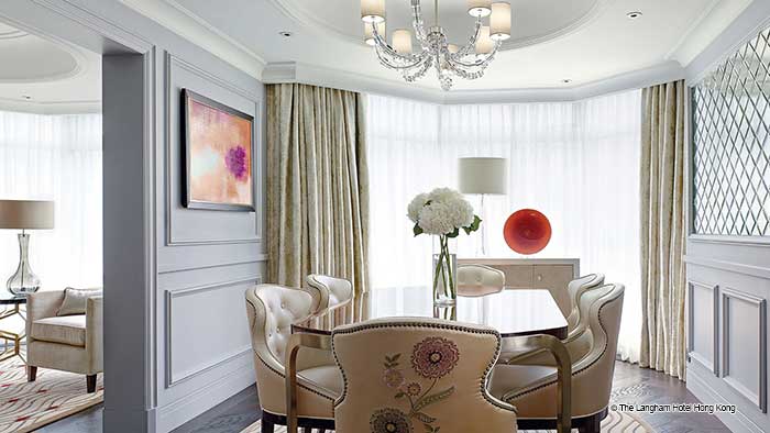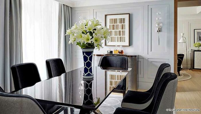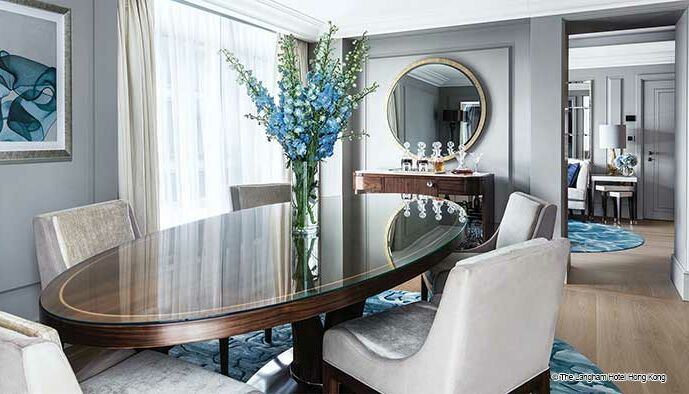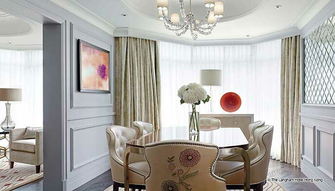 Intérieurs élégants. Une tradition d’hospitalité irréprochable et raffinée depuis 1865. Le Langham, à Hong Kong, est le grand hôtel de la ville.