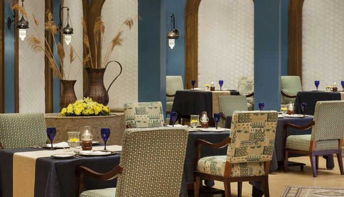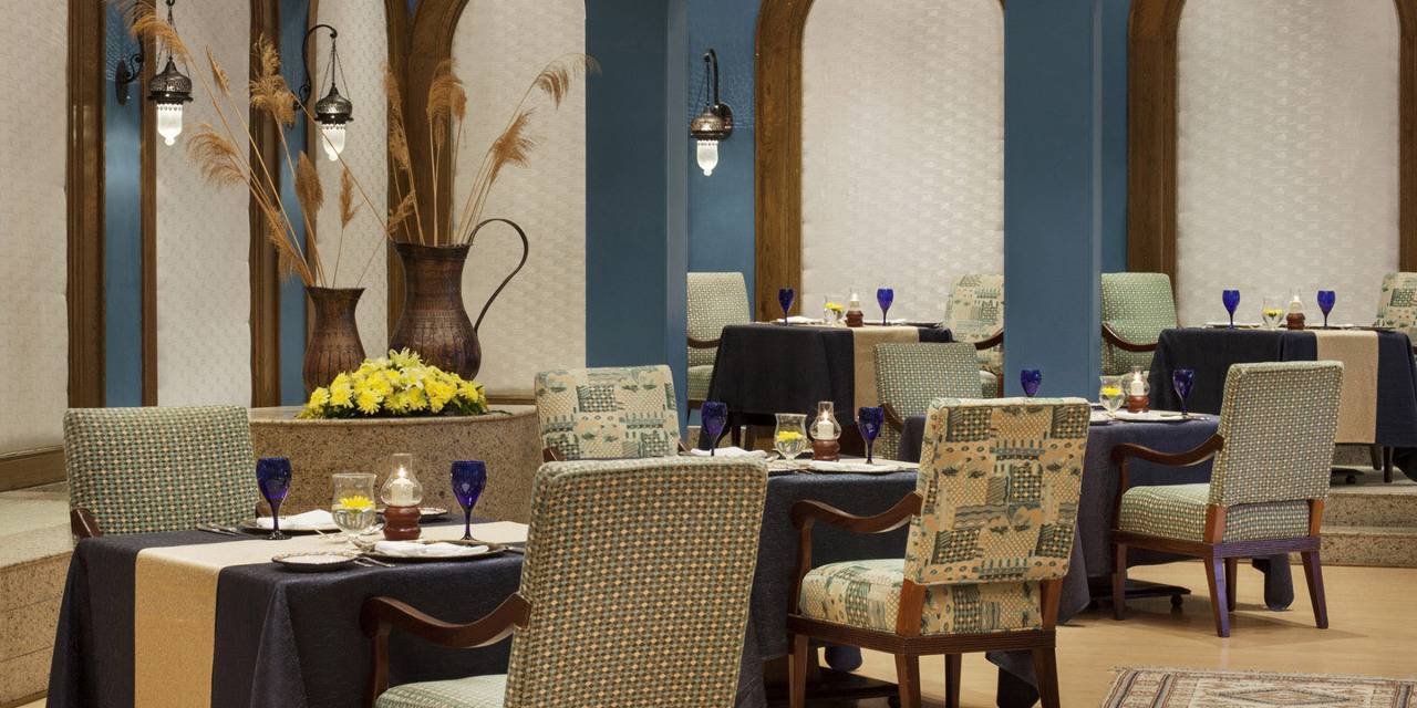 Le restaurant offre une vue imprenable sur la mer et propose un menu à la carte de cuisine internationale et orientale pour le dîner. Il est possible de dîner en plein air ici, pour profiter de l‘incroyable aspect féerique des dômes illuminés de la station après la tombée de la nuit. Une option de la cour intérieure en plein air ajoute également à l‘expérience culinaire. Un menu pour enfants est disponible pour le dîner.