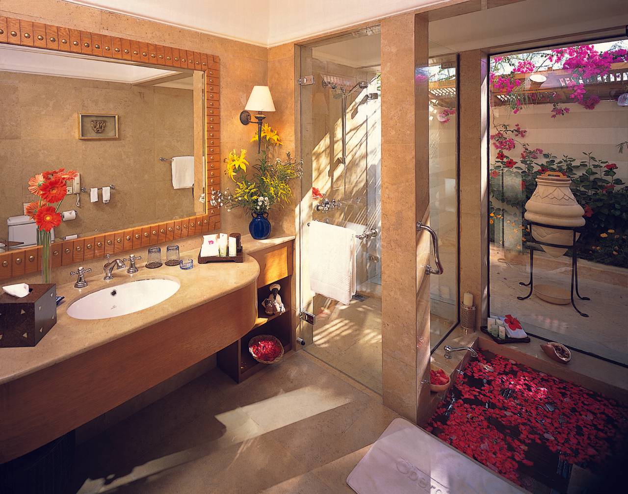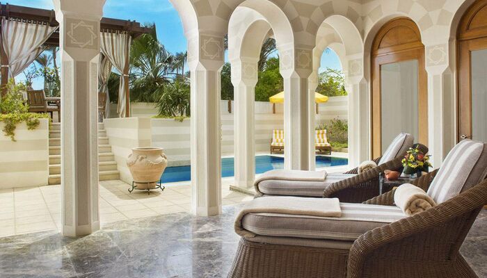 Toutes les 63 suites de luxe et 21 suites de luxe supérieures sont spacieuses et élégamment aménagées et disposent d‘une salle de bains luxueuse avec cabine de douche séparée. Leurs bains de marbre immergés donnent sur un jardin clos de murs privé en plein air. En outre, il y a 12 grandes suites ayant leur propre piscine privée, chauffée dans les mois les plus froids. Il y a 6 suites royales. Ces beaux appartements disposent d‘un salon / salle à manger séparé, d‘un cellier attenant et d‘une salle de bains pour invités. En plus d‘une cour privée ouverte avec piscine, les suites royales disposent d‘un pavillon extérieur. Le complexe est équipé d‘un accès Internet sans fil gratuit dans toutes les suites et les espaces publics, y compris la piscine principale. Toutes nos suites royales avec piscine privée, grandes suites avec piscine privée, suites de luxe supérieure et certaines de nos suites de luxe sont maintenant équipées de stations d‘accueil pour iPod.