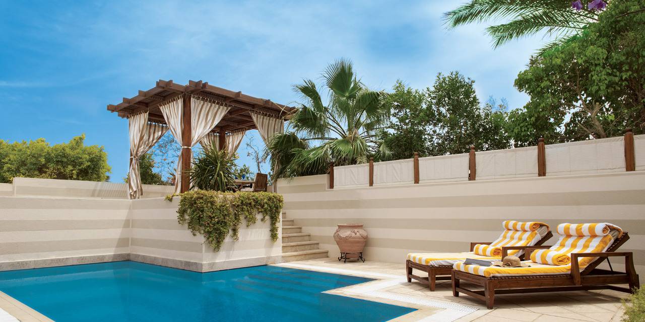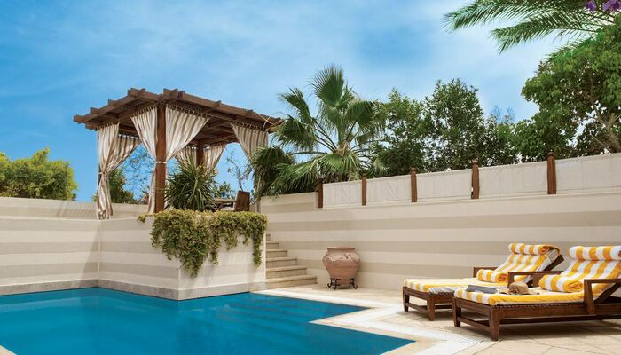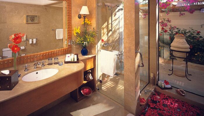 Les Grand Suites ont une belle piscine privée. Situé dans l‘intimité d‘un jardin intérieur, les piscines sont chauffées dans les mois les plus froids. Ils disposent d‘une chambre spacieuse et d‘un salon séparés par des arches de style arabe. La chambre offre un choix de lit king-size ou lits jumeaux. En outre, certaines suites offrent également une option d‘un canapé cum lit. La luxueuse salle de bains aux murs de verre, donnant sur un jardin privé en plein air, dispose d‘une baignoire en marbre et d‘une cabine de douche séparée. Toutes les suites disposent de deux télévisions avec chaînes par satellite, d‘une station d‘accueil pour iPod et d‘un accès Internet gratuit. Il y a un walk-in avec beaucoup d‘espace de rangement. Situé dans une cour fermée, la terrasse privée ombragée est idéale pour manger en plein air.