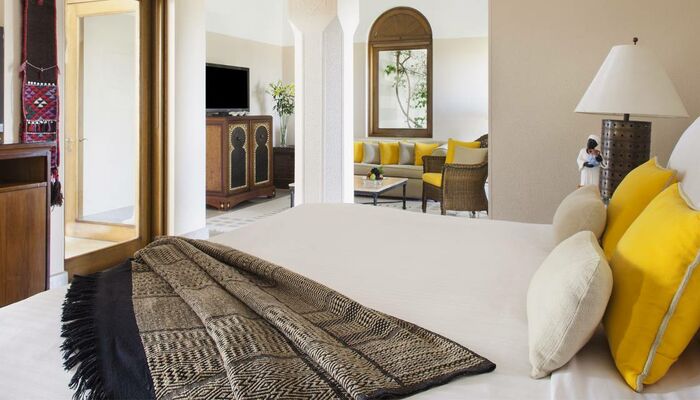 Les suites de luxe supérieures sont situées très près du rivage et sont à une courte distance de marche de la plage. Ils disposent d‘une chambre spacieuse et d‘un salon séparés par des arches de style arabe. La chambre offre un choix de lit king-size ou lits jumeaux. En outre, certaines suites offrent également une option d‘un canapé cum lit. La luxueuse salle de bains aux murs de verre, donnant sur un jardin privé en plein air, dispose d‘une baignoire en marbre et d‘une cabine de douche séparée. Toutes les suites disposent de deux télévisions avec chaînes satellite, d‘une station d‘accueil pour iPod et d‘un accès Internet sans fil gratuit. Il y a un walk-in avec beaucoup d‘espace de rangement. Situé dans une cour fermée, la terrasse privée ombragée est idéale pour manger en plein air.
