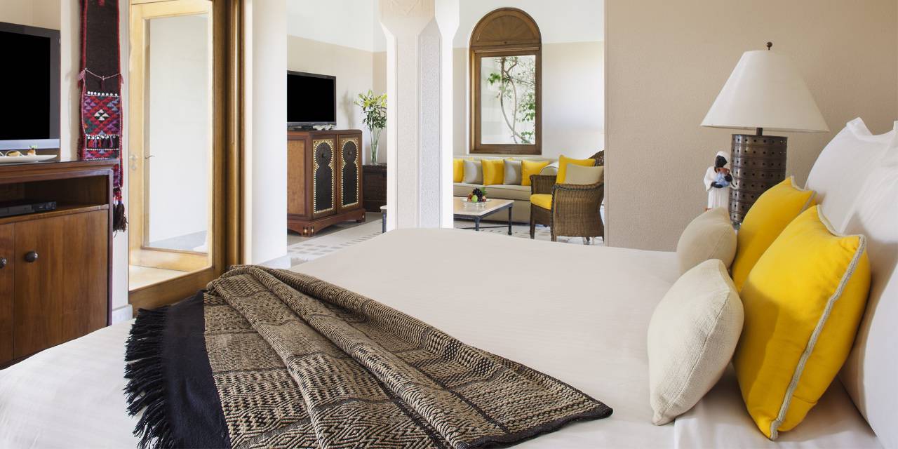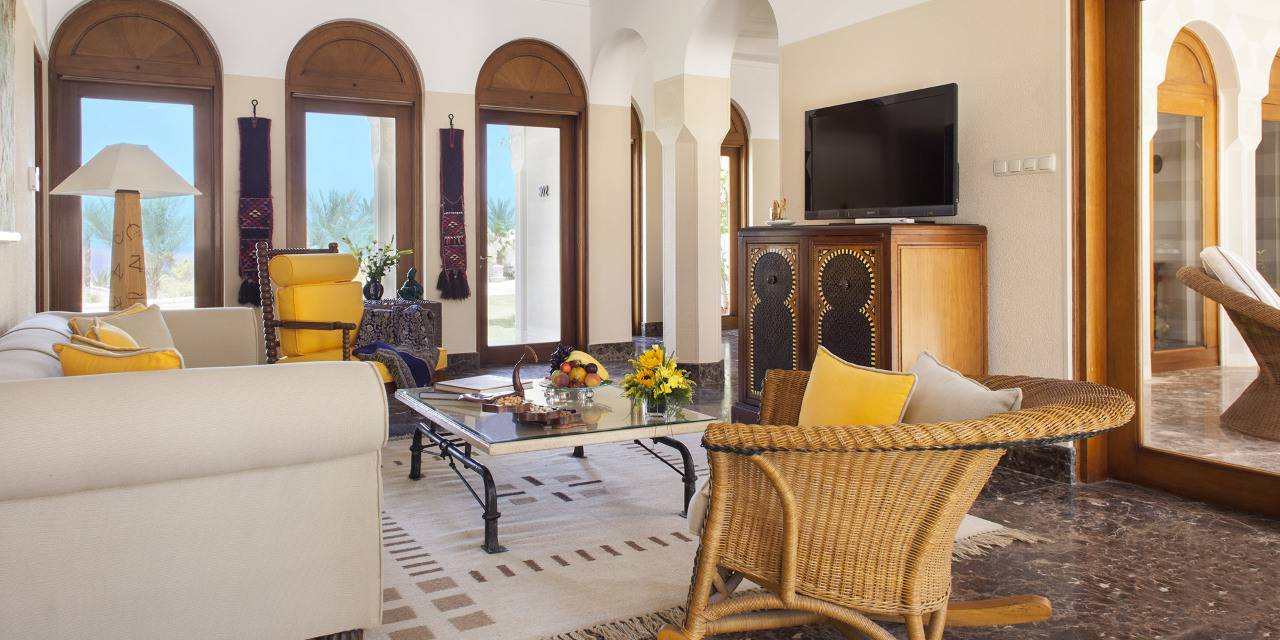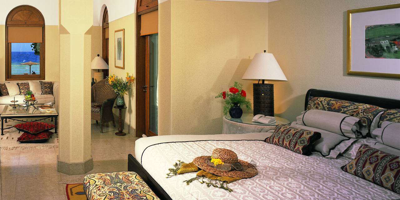Les suites de luxe de l‘Oberoi Hôtel Sahl Hasheesh Egypte sont situées dans des pelouses luxuriantes. Ils disposent d‘une chambre spacieuse et d‘un salon séparés par des arches de style arabe. La chambre offre un choix de lit king-size ou lits jumeaux. En outre, certaines suites offrent également une option d‘un canapé cum lit. La luxueuse salle de bains aux murs de verre, donnant sur un jardin privé en plein air, dispose d‘une baignoire en marbre et d‘une cabine de douche séparée. Toutes les suites disposent de deux téléviseurs avec chaînes satellite et accès Internet sans fil gratuit. Il y a un walk-in avec beaucoup d‘espace de rangement. Situé dans une cour fermée, la terrasse privée ombragée est idéale pour manger en plein air.